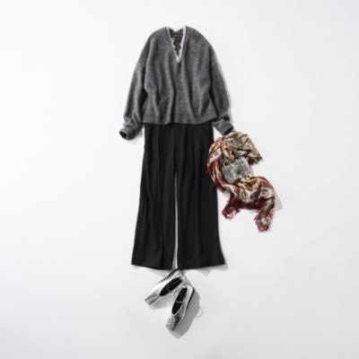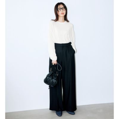 eclat premium(エクラプレミアム)レディースファッション通販 E by eclat 【斉藤くみさんコラボ】裏起毛サイドベルトつきタックパンツ