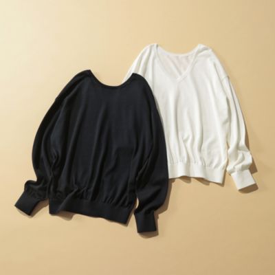 - 上質な素材を使用したこだわりのニッティングに定評のあるニットブランド「SLOANE」が、満を持して作ったコットン100%の2WAYニット。クルーネック面、Vネック面ともに計算し尽くされたカッティングで、どちらを前にしても後ろ姿まで女っぽく。