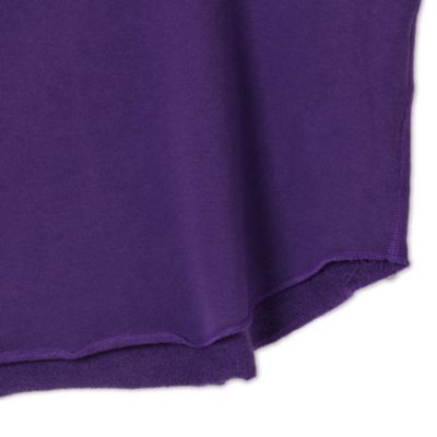 - インすることを前提に作っているので、裾にはリブをつけず、ボトムの中で生地がゴロつくのを軽減しています。大きめのガゼットを前後に付けて、後ろ姿も可愛く仕上げました。
