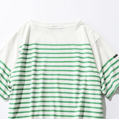 - ゆるめのボートネックで王道フレンチなムード漂う半袖バスクシャツ。こだわりのフランス産コットンや現代的なワイドシルエットもベーシックな着こなしに嫌味のない特別感を与えてくれます。適度な脱力感もあるので、デイリー使いにもぴったりです。