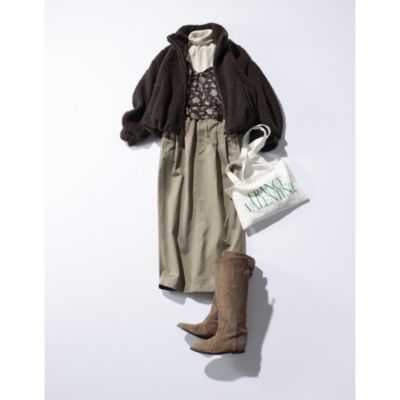 - 一見、ペタンコに見えて、かかと部分にインヒールが入っているので、膝から下を長く見せてくれます。すとんとしたシルエットが今年っぽい!スカートとのスタイリングはもちろん、ボトムインのスタイリングもおススメです。