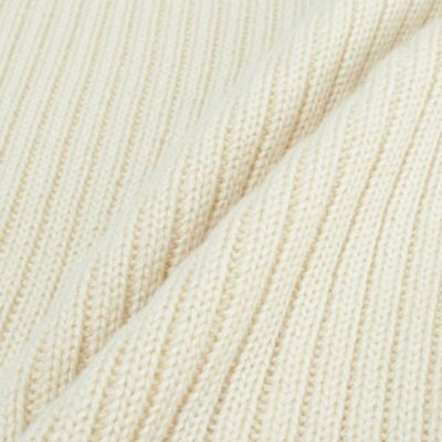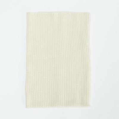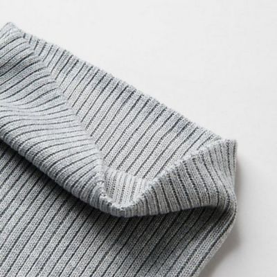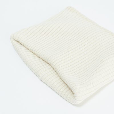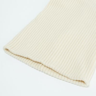 首に通すだけでクシュッとしてサマになるように幅や高さも考えました。また、ほどよいフィット感と着脱のしやすさも両立しています。太めのリブ編みがスタイリングのアクセントになってくれるので、単調になりがちな冬のコーディネートを格上げするのにぴったりのアイテムです。