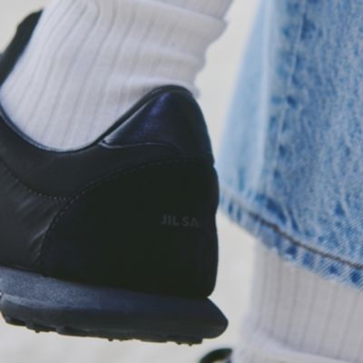 - 80年代のコートシューズから着想を得た、「JIL SANDER」の最新スニーカー。ほどよいソールのボリューム感と、ヒールの型押しロゴがアピールポイント。ワントーンでまとめた異素材切り替えも、シンプルでありながら洗練されたひとさじの個性を感じさせる。