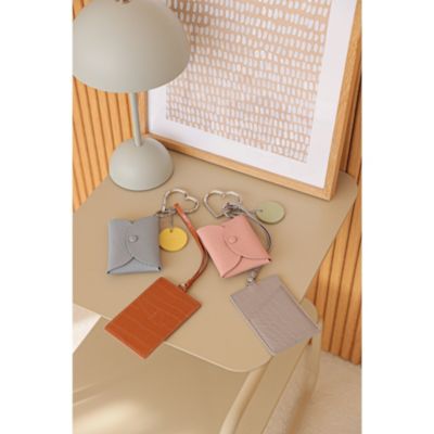各チャームの色はあえてバラバラにして、どんなバッグやコーディネートにも馴染むようにデザイン。まろやかで上品な色合いは、バッグにさりげないアクセントを加えられます。写真上、左の「Harmony Glow」はキャメル×ブルーがきりっとマニッシュ。右の「Harmony Grace」はグレー×ピンクが春らしくほんのりフェミニン。そして、しなやかなシュリンクレザーと艷やかなクロコの型押しレザーを組み合わせた点も、洒落見えするポイント。どちらの革も傷や汚れが目立ちにくいので、気兼ねなくヘビーローテーションできます。