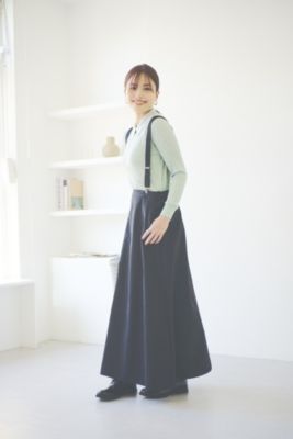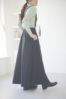 「昨秋から素材やシルエットにカッコよさ?を感じるスカートに惹かれています。こちらは’24年12月号でコラボしたサスペンダー付きスカートの進化版!コンパクトな腰まわりからシュッと広がるAラインが印象的な綿ナイロンのチノ素材で、サスペンダーはほかのボトムにも使えるタイプに。ベーシックなシャツを合わせるだけで絵になります」