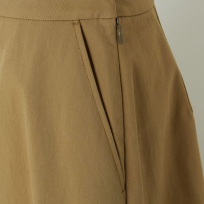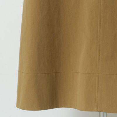 - 体にまとわりつかない厚みとハリ感がありつつ柔らかな綿62%・ナイロン38%のツイル生地は、きちんと見えするフラットな表面感も魅力。中心に入れたパイピングや裾のステッチがさりげないアクセントに。ベージュとブラックの2色展開。