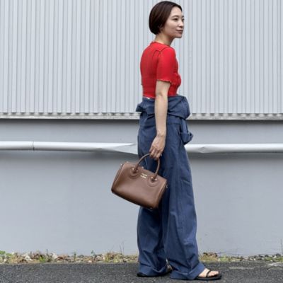 - しっかりとしたマチで見た目以上に収納できる、ボストンバッグ。開け口も広いので物の出し入れもしやすく、品の良さがありながらもカジュアルにもなじむ存在感。ゴールドジップの煌めきや箔ロゴがアクセントを効かせ、好感度も抜群です。