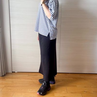 - シンプルなのに映える一枚は、上半身のすっきり見えも期待大!