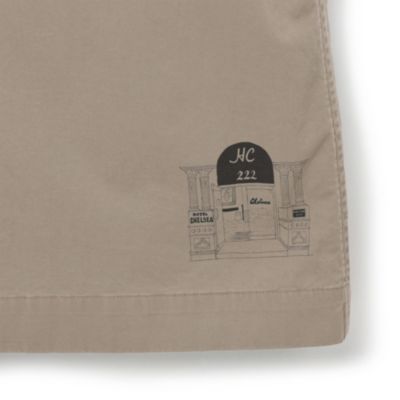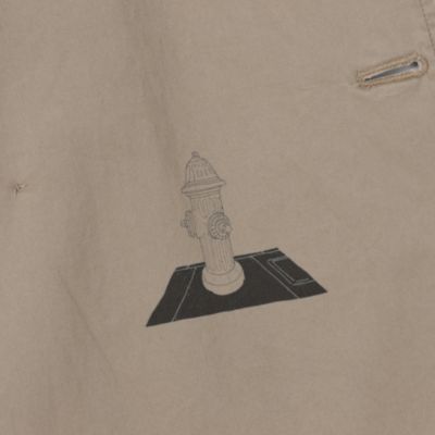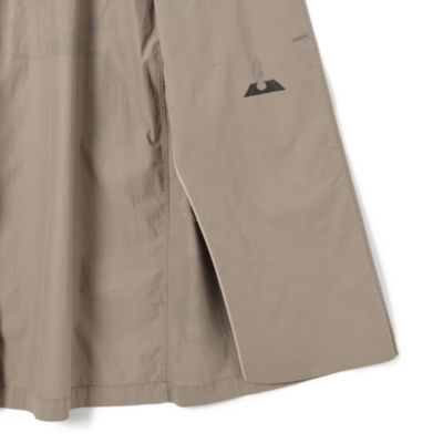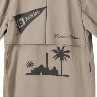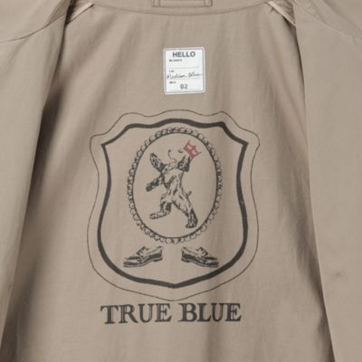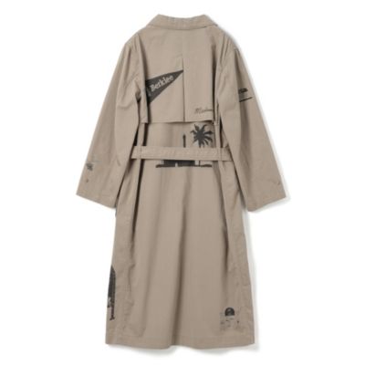 混紡糸を使用した高密度織物の素材。艶やかなコットンと軽やかな麻が織りなすナチュラルな清涼感が特徴。加工でアタリをつけ、ヴィンテージ感を演出したトレンチコート。ESSENTIALのアイコンイラストなどを全体にプリントし、MADISONBLUEのマインドとカルチャーを表現。ブランドのこだわりが詰まった一着。