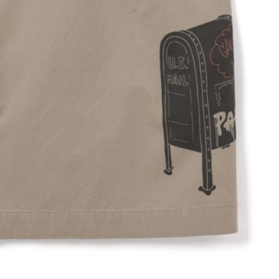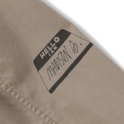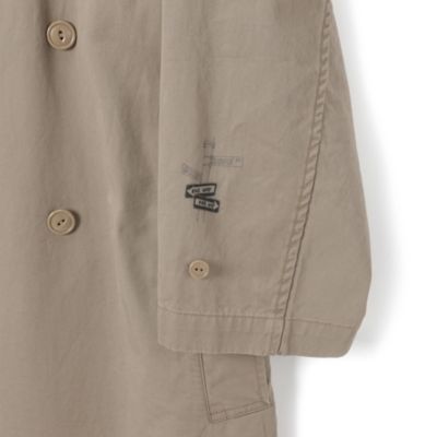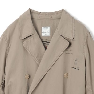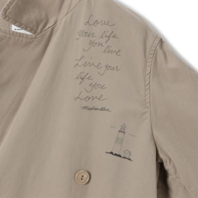 - ヴィンテージ感がありつつ、古着ではなかなか見つからないこなれたシルエットが他にはない存在感のコート。あえて裏地を付けていないので軽やかに着られるのも特徴です。イラストやディレクター中山氏が走り書きしたメッセージをちりばめたこだわりのデザイン。