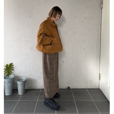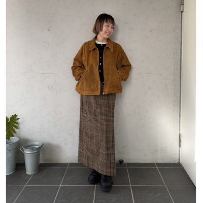 - 「スエードのアウターって重かったり固かったり、着心地のいいものって意外と少ないんです。この「OXFORD BLOUSON」は、ディレクター自らが生地屋へ出向き、探しに探してやっと出合ったこだわりのスエード素材。カーディガン感覚で着られる軽さと柔らかさ、リッチな風合いは感動もの! コンパクトに見えますが、アームホールを大きく設定しているので、厚手のニットなどの重ね着も可能です。お値段は少々張りますが、一度袖を通せば納得のクオリティ。今季はチェックのロングスカートで、ほんのりトラッドに寄せるのが気分です。」(Obladaプレス戸塚友理さん)