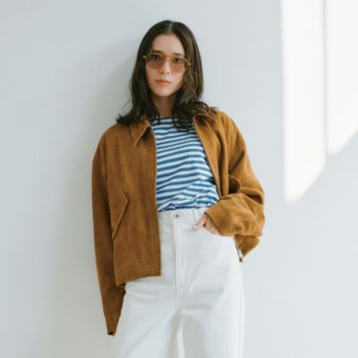 - 柔らかなラムのスエードレザーで仕立てた軽やかなブルゾン。きれいなドレープ感が出るシルエットが魅力。 レザージャケットながら、スエードならハードすぎないので、合わせるアイテムを選びません。 インナーにニットを着込めるようにアームホールは大きく設計し、着丈はやや短めにすることで、ボリュームボトムスとのバランスも取りやすく。 上品で美しいタバコスエードカラーで、投資しがいのある一着です。女性らしいワンピースに合うのはもちろん、Tシャツ×デニムのいつものコーデもこのブルゾンをさらりと羽織るだけで旬のムードに。