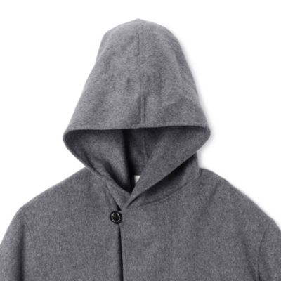 - 着心地のいい軽やかアウターが豊富に揃うオーシバル。ロングカーデのような気軽さでしっかり温かいリバー仕立てのフーディコートは、上品な発色のグレー。毛抜き合わせ仕様のウールビーバー素材、フードの2ボタンコート。