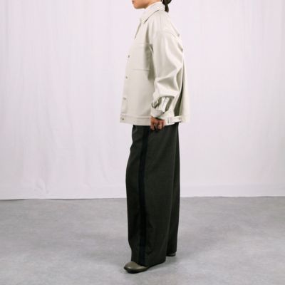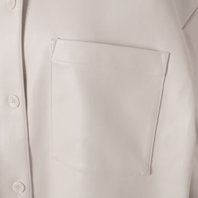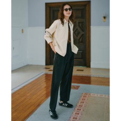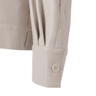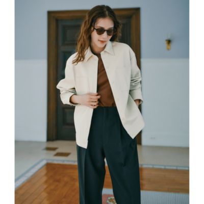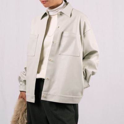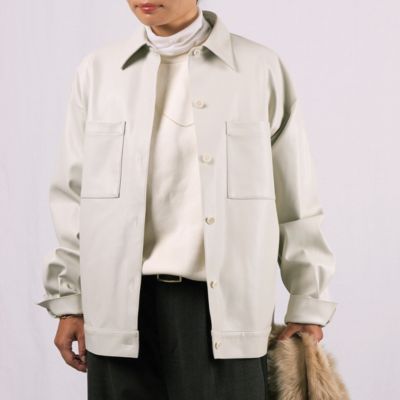 「マットな質感の服が主役になる季節こそ、レザー調のツヤを効かせることでコーデが一気に華やぎます。アウターとしてはもちろん、真冬にはシャツ感覚でアウターの下に仕込めば、着こなしの完成度がアップ」スタイリスト亀恭子さん