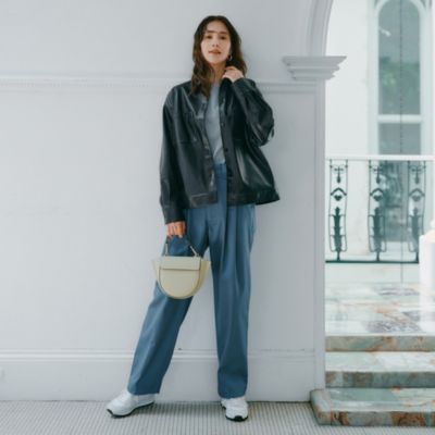 合わせるアイテムのシルエットを全部ゆるめにすることで、ブラックレザー調でも強すぎず、洒落感たっぷり。横側のふわりとした立体感が、着こなしに奥行きを与えてくれます。