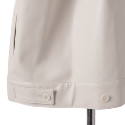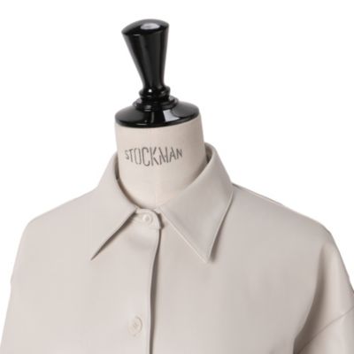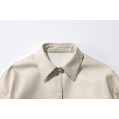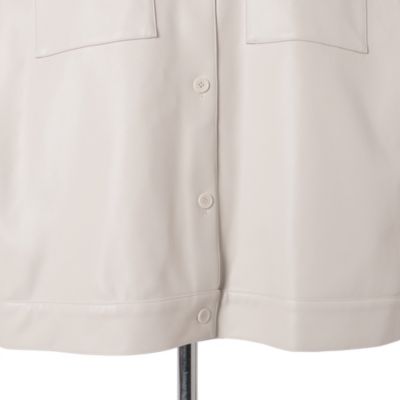 上品なツヤ感でレザー見えする素材。柔らかく体になじみ、着心地も快適です。ほどよいオーバーサイズでこなれ感があり、152cmの私でお尻が隠れる丈。裾はボタンで調整でき、すっきり着られます。襟付きなのでシャツ感覚で羽織れるのも◎。