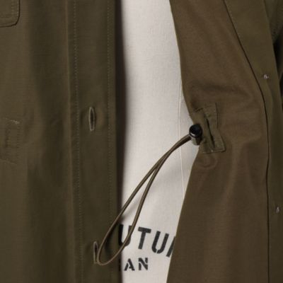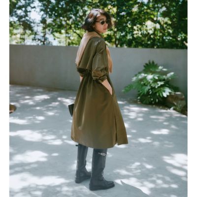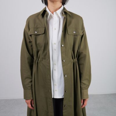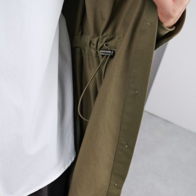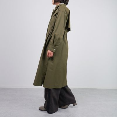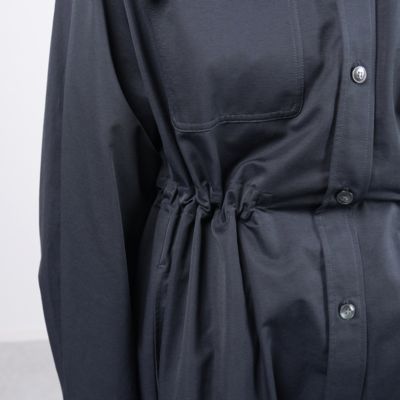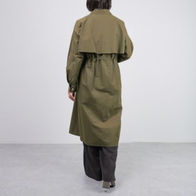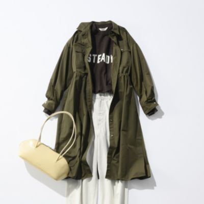 さっと羽織るだけでサマになるデザインなので、端境期には軽やかなトレンチ感覚で活躍してくれます。小柄な方でも、ウエストをぎゅっと絞ればバランスよく着られるので、ロング丈でも重く見えません。前を閉じてワンピース風に着たり、開けてさらりと羽織ったり…と、いろいろな着こなしを楽しめるのが魅力です。撥水素材なので、天気を気にせずおしゃれを楽しめるのも高ポイント!(MD.kozu)