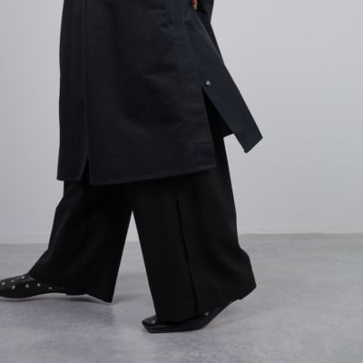 一番のこだわりは、どんな身長でもバランスよく決まる丈感。ウエストのドローコードは高めに設定しているので、小柄さんはギュッと絞るだけで腰位置が上がり、脚も自然に長く見せられます。長身さんは両裾のボタンを外せば、ひらりと揺れる裾がドラマチックで足さばきも軽やか。袖口の菊型コンチョボタンも、手元の動きにあわせてキラッと華やぎを添えます。こんなふうに細部まで計算しつくしたデザインだから、自然に「なんだか素敵!」が叶うんです。