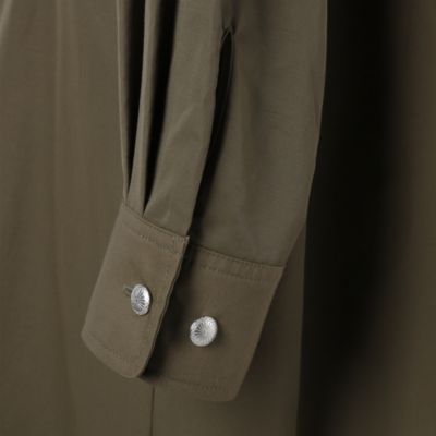 - ワンピースとしても、軽アウターとしても着られる、着回し力抜群の撥水ドレスコート。上品な光沢を持つ素材には撥水加工を施し、突然の雨でも安心。ウエストにはドロストコード付きで、気分やスタイリングに合わせてシルエットを自在にアレンジできます。比翼仕立ての裾スリットで足さばきも軽やかに。華やかなフレアヨークや袖口のコンチョボタンなど、細部までこだわったディテールが、大人の着こなしにエッジを添えます。シーズンの端境期にも活躍する、機能性とデザイン性を兼ね備えた一着です。