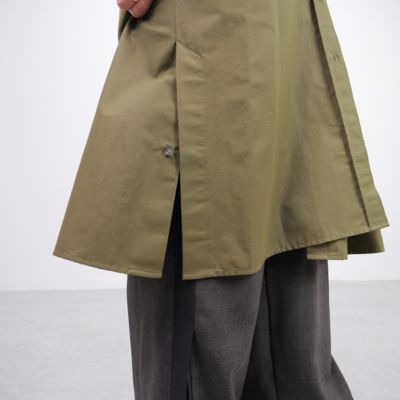 どしゃぶりの雨でワンピースの裾がびしょ濡れに……そんな経験から生まれたのが、天気がいまいちでも気持ちよく外出できる、こちらのアイテムです。撥水性だけでなく丈にもこだわり、身長の異なるスタッフ大勢で何度も試着。顧客レビューも読み込んで導き出したベストな丈は、どんな身長でも自然にバランスが整います。冬コートには少し早い今の時期、体温調整にももってこい。着回しやすくなったsuadeoのほかのアイテムと合わせるのもおすすめで、特にラインパンツやシアースカートとの相性は抜群です!(デザイナーHiguchi)