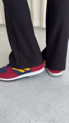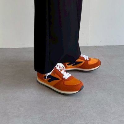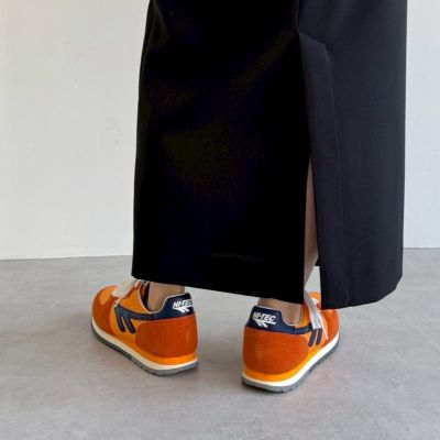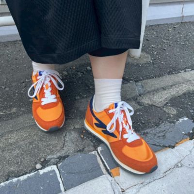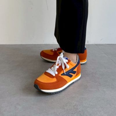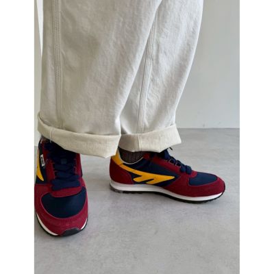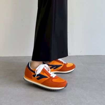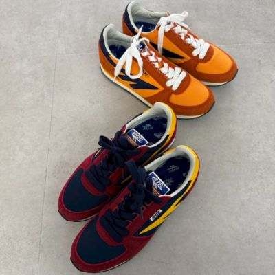 - ブランド40周年を機にロンドンのセレクトショップとコラボした再復刻版モデルは、新しさと懐かしさが同居する配色が決め手。1981年に発売された「シルバーシャドウ」をベースに、コンパクトなシルエットで、遊び心のあるデザインに仕上げられています。足あたりがソフトで、軽い履き心地も◎。バーガンディ×ネイビーとオレンジ系の2カラー展開。