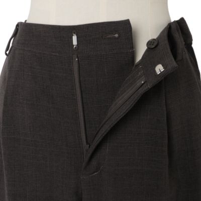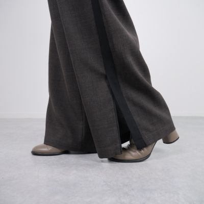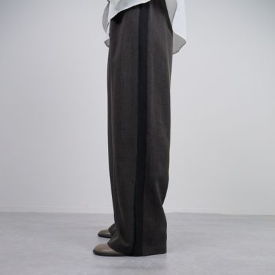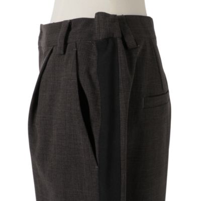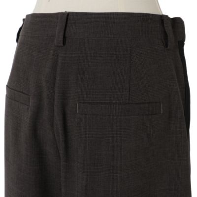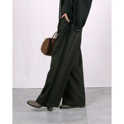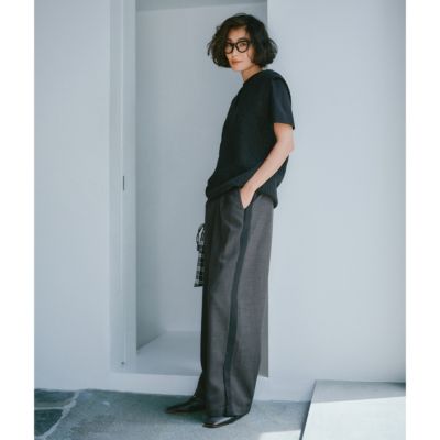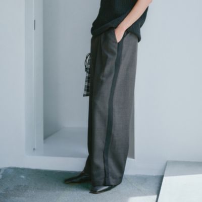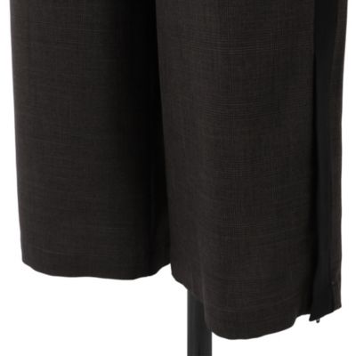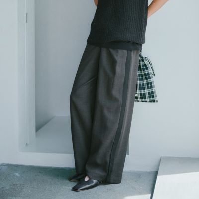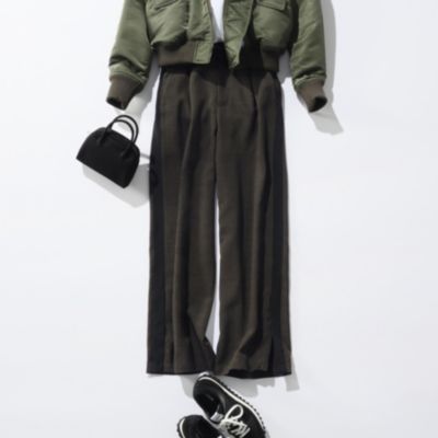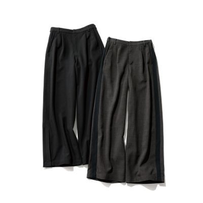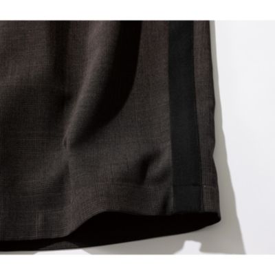 - きちんと感のあるスラックス仕立てで、サイドラインもスポーティーになりすぎず上品な印象です。ブラウンは細かなチェックで秋らしく、ブラックはシンプルながらラインがアクセントに。裾スリットで重めの靴とも好バランスです。(MD kozu)