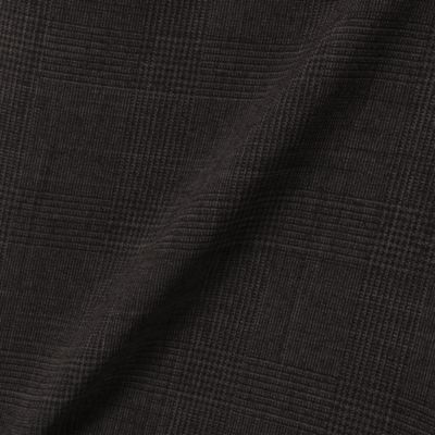 ブラウンチェック:ポリエステルながらウール見えする上品な表情が特徴。防シワ性や吸水速乾性を備えた、イージーケアな機能性素材です。