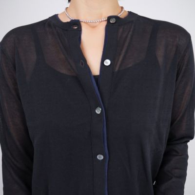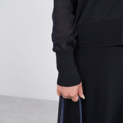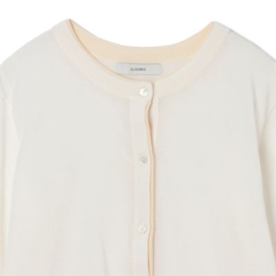 - シンプルながら配色がアクセントになるカーディガン。この春、新色でオフホワイトを追加しました。ほんのりシアーな素材感は、ロングシーズン活躍。ほどよくコンパクトなシルエットで、ボタンを留めてトップス風に着ても様になります。(MD.kozu)