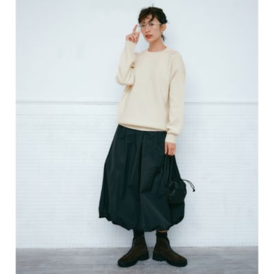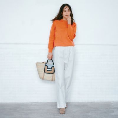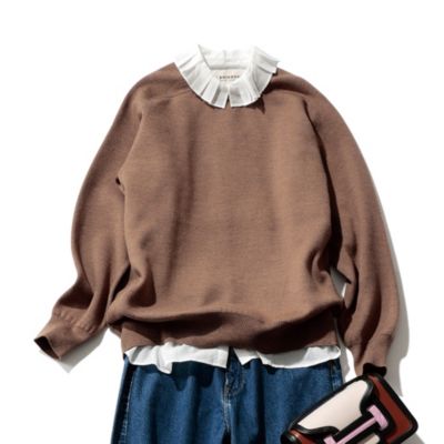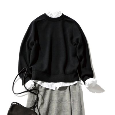 「水晶玉子さんの占いで「夏の岩」と出た私は、ラッキーカラーの白とブラウンを購入。ニットだけれどスウェットのような気軽さとこなれ感があり、立体的なダブルフェイスの襟ぐりのおかげで、一枚で着ても決して寂しくならないところも気に入っています。フリル衿のブラウスやシアータートルを重ねたくて、サイズは4を選びました。薄すぎず厚すぎない生地感も良く、夏以外の3シーズンたっぷり愛せます」(エディターS)