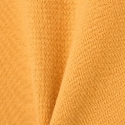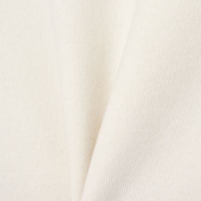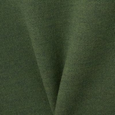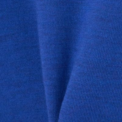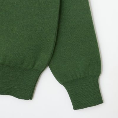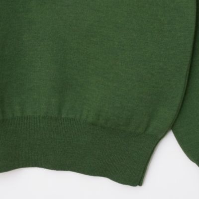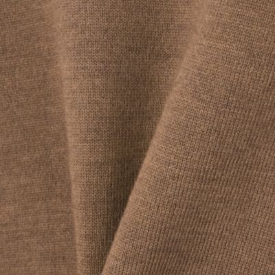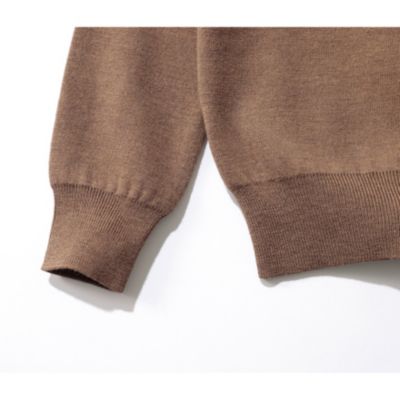 表地にはカシミアのような柔らかさと上品な光沢感を持つメリノウールを使用。裏は細番手の超長綿で編み立てたダブルフェイス編みのニット生地を使用。ネックと袖口はリブ編みで立体感を出し、シンプルなデザインにメリハリをプラス。全体はふっくらとした風合いで、品のある大人な佇まいを叶えるニットです。