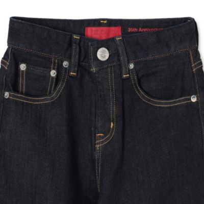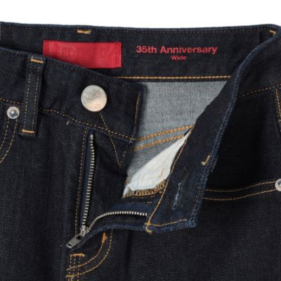 ハイパワーのストレッチデニム地を採用した「35th Anniversary Wide」。ビンテージライクな風合いとナチュラルな素材感がありつつ、超長綿による耐久性UPと滑らかな肌触りが特徴。イメージ通りの美脚を叶え、穿き心地にもとことんこだわった一本です。