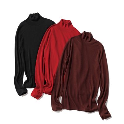 - シルク混ならではのなめらかな肌触りと、ほんのりとしたツヤ感が上品な印象になります。体につかず離れずのコンパクトなサイズ感で、一枚でも決まります。首まわりをやさしく包み込むハイネックデザインは、冬の装いにぴったり。顔映えするレッド、定番のブラック、ニュアンスのあるブラウンの3色展開です。(MD.kozu)