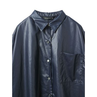 HAPPY PLUS STORE(ハッピープラスストア)レディースファッション通販 シャツワンピース mizuiro ind グロッシーワイドハーフスリーブシャツワンピース