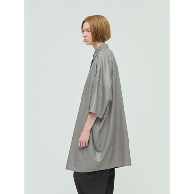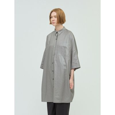 - オイルドコットンのような、落ち着いた光沢感のあるグロッシーワイドハーフスリーブシャツワンピースです。
