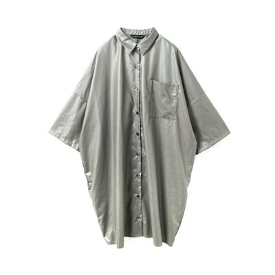 - グロッシーワイドハーフスリーブシャツワンピース