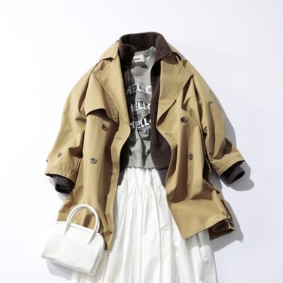 秋から春までロングシーズン楽しめます!トレンチは撥水加工が施され雨の日でも安心。きれいなAラインシルエットですが、裾のドローコードをきゅっと絞るとすっきりしたシルエットに変化。ボアブルゾンはゴールドジップで単品でも品よく決まります。(MD.kozu)