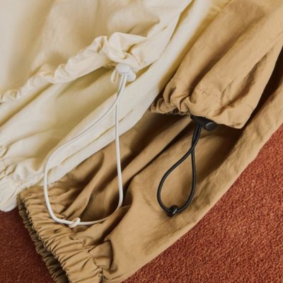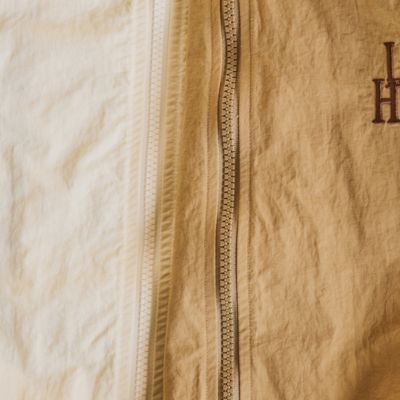 このブルゾンには大人目線の「あったらいいな」がたくさん。シンプルでも気のきいた刺繍は、エクリュとベージュのどちらもブランドを象徴するモチーフで、ボーイスカウト由来のLa Hutteらしく、自然や自由を愛する思いが込められています。刺繍の色は表地になじませているので、カジュアルすぎず大人度高め。裾のドローコードは、絞ればふんわりフェミニンに、緩めればハンサムにと、気分次第でイメチェンできます。朝の自転車移動や夕方の公園、旅先での天気急変などで冷え込みが気になるときも、ファスナーを閉じれば首元までしっかりカバー。おしゃれも実用性もいいとこどりしたこのモデルは、この春一番の「買ってよかった!」になるはずです。