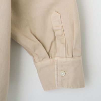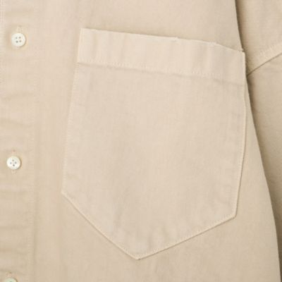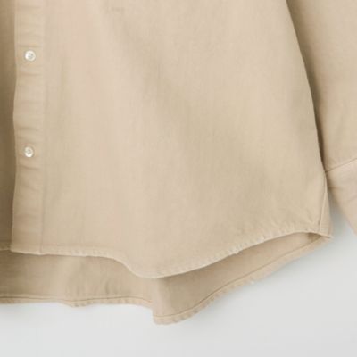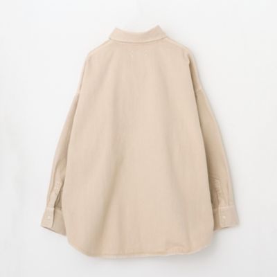- デニムパンツと同じ生地&カラーで仕立てた、その名の通りオーバーサイズのシャツ。Gジャンよりも軽快で、デニムシャツよりも重厚感を感じる、ちょうど中間のような立ち位置で、メイン、アウター、インナーといろんな役割を担う一枚。ヒップまできちんと隠れる着丈や、裾がアレンジしやすいラウンドヘムもポイント。