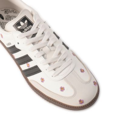 アディダス サンバが、ただのトレーニングシューズだった時代は遠い昔。このOGバージョンは、定番のカジュアルシューズとして、70年の伝統をを受け継いでいる。1950年代のアイコニックなインドアサッカーシューズを、滑らかなレザーアッパーと遊び心のある花の刺しゅうでアップデート。ラバーアウトソールと補強されたTトゥにより、クラシックとなったオリジナルモデルの耐久性を再現している。