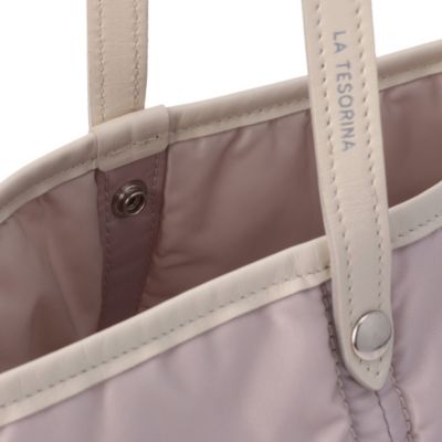 バッグの表地には、通常のナイロンよりも高密度に織り上げられた光沢感のある66ナイロンを採用。より優れた耐熱性と強度を誇り、日常使いに安心の耐久性を実現しました。 裏地にはなめらかなポリエステル素材を使用し、中綿をボンディングすることでふっくらとしたボリューム感を生み出しています。