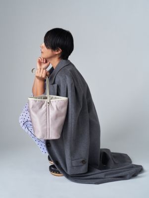 - “服に合わせてバッグも着替えるように楽しむ”がコンセプトのバッグブランドの人気バケツバッグをグレートーンで初の別注。ボディとレザー部分でトーンを変えることでさりげなくコントラストを効かせました。底部分にはクッションが入っているため、スポーティな素材感ながらもバッグ単体で自立。