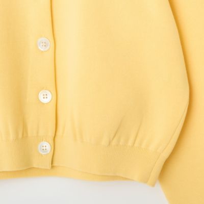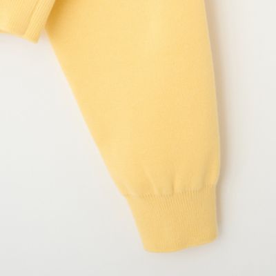 - 二重編みならではの立体フォルムが魅力のカーディガンは一枚で着てもきちんと感が出るのがポイント。春らしいレモンのようなクリームイエローと、オケージョンにも使える上品なダークネイビーを別注しました!表は高級スーピマ超長綿、裏はポリエステルで編み立てることで立体フォルムを実現。