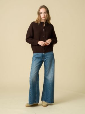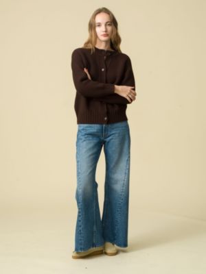 - サイドシームを裾に向かうほど前中心に配置するというユニークな発想で、立体的なフレアシルエットを演出した最新作。センタープレスパンツをはいた時のような真っ直ぐ美脚が叶う上、太ももからひざにかけての色落ちがハイライト的な役割を担い、さらなるスラリ見えを後押し。スタイルアップ効果と、コーデの主役を張れる存在感が両得できます。シーズンレスで活躍する爽やかなブルーも魅力的!