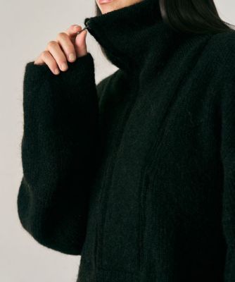 モヘア混の紡毛を畦編みにした素材を使用。