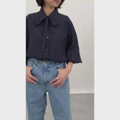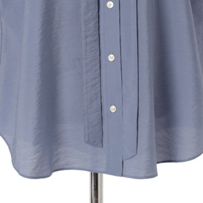 - ベーシックなレギュラーカラーに、取り外しできるタイが付いた、一癖ありなモードシャツ。落ち感があり、程よいドレープ感がきれいなローン素材で仕立てました。タイを垂らしても、結んでも、またはタイを外してレギュラーシャツとしても使える、汎用性の高さもポイントです。