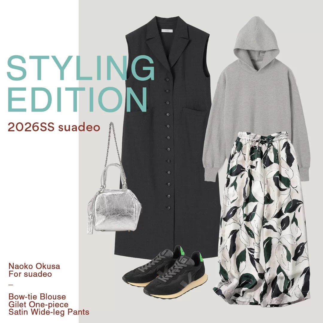 HAPPY PLUS STORE発の「suadeo」。感度のいい""上質カジュアル“を愛する皆様のために、おしゃれの幅を広げる“今着てほしいアイテム”を心地よい素材にこだわって作りました。