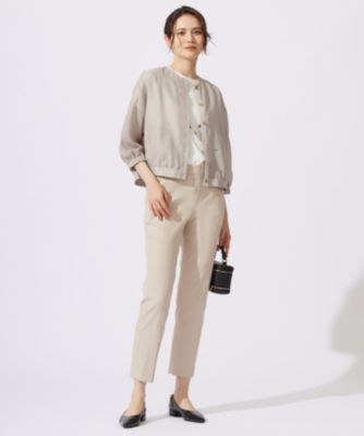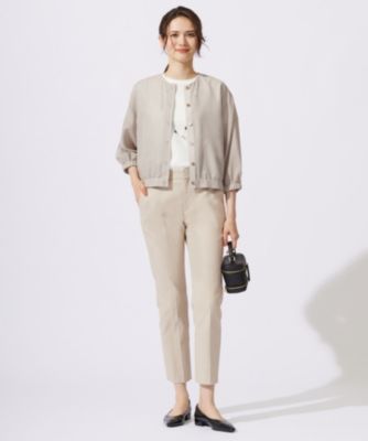 さらっと羽織れるキレイめノーカラーブルゾン