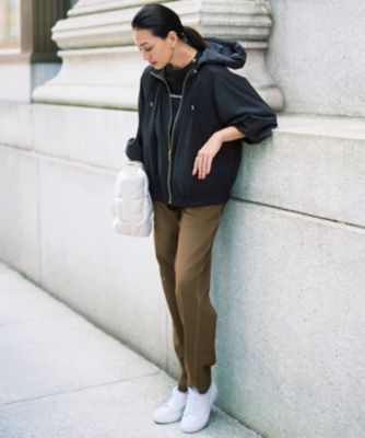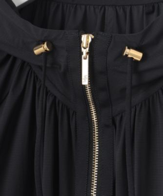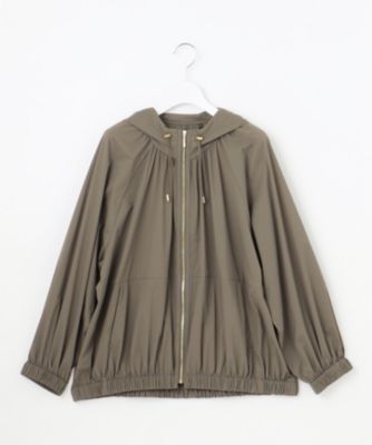 - 夏の冷房対策にもおすすめな持ち運びしやすいブルゾン■デザイン襟ぐりと裾にたっぷりと入れたギャザーディテールが、程よく女性らしい印象のブルゾンです。フロントに繊細な輝きのゴールドファスナーと同色のグログランテープをポイントにした、大人っぽいカジュアルアウターです。ボリューム感のあるラグランスリーブは、袖口にゴムを入れているので袖をたくし上げることで生まれるフォルムがより抜け感を演出します。緩やかに前後差をつけた裾はヒップ周りを程よくカバーしてくれるのもポイントです。表面は撥水加工入りなので、ゲリラ豪雨の多いシーズンにもおすすめです。持ち歩きもできるよう、同素材の小さいバッグが附属するパッカブル仕様です。■素材細番手のナイロン糸を使用した、ナチュラルストレッチ性のあるリップストップ素材です。表面には撥水加工が入っています。軽量でありながら目の詰まった素材で、軽い雨なら内側に染み込みにくい機能性の高さが特徴です。■同素材アイテムベスト(VRWRGW0303)