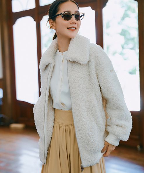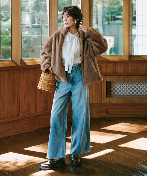 ミドル丈ブーツ&もこもこ小物でコーデが新鮮!