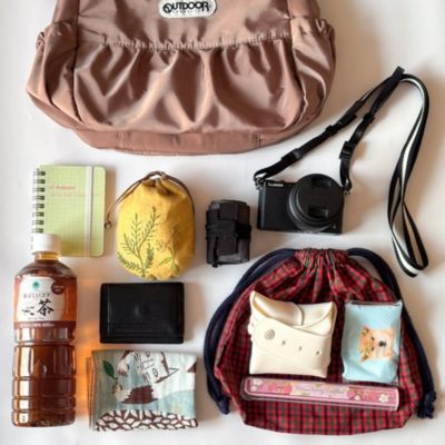 傘やボトル、スマホなどは、さっと出しやすいサイドポケットに入れて。